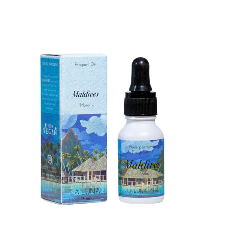 Transportez vous aux MALDIVES avec notre fragrance monoï. Ses notes exotiques et sensuelles rappellent les lagons turquoise et les couchers de soleil tropicaux.