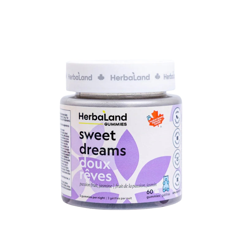 Envolez-vous vers le pays des rêves avec les bonbons Herbaland Sweet Dreams, votre somnifère vegan incontournable . Composés de mélatonine, de L-théanine, de mélisse et de vitamine B6, ces bonbons sans sucre vous aident à vous endormir plus rapidement , à améliorer la qualité de votre sommeil et à rétablir votre cycle veille-sommeil naturel .