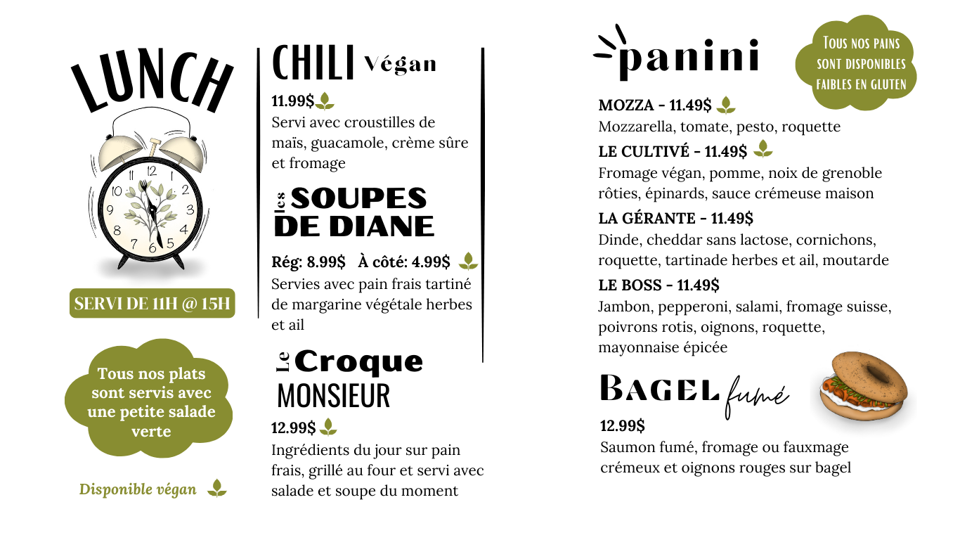 Le Bistro La Récolte vous accueille dans une ambiance chaleureuse et familiale pour un repas savoureux ou une collation rapide. Du déjeuner au dîner, nous vous proposons des plats préparés avec des ingrédients frais et de qualité.