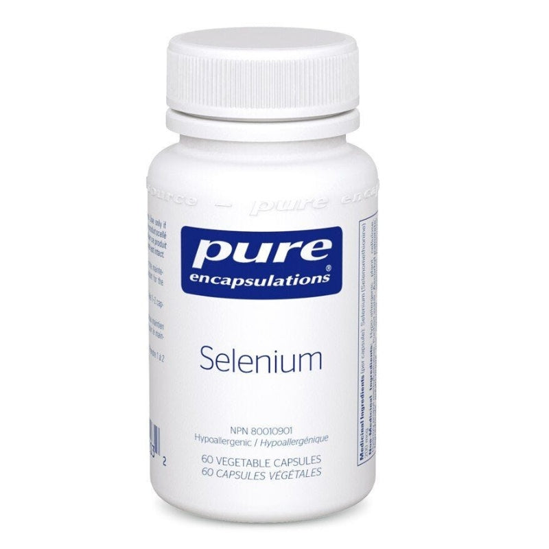 Selenium protects normal cell function by eliminating harmful free radicals. It is a natural antioxidant that reduces oxidative stress and delays the oxidation of polyunsaturated fatty acids as part of selenoprotein P and selenoenzymes such as glutathione peroxidase. The highest concentrations of selenium are found in the thyroid gland, where it eliminates reactive oxygen species produced during thyroid hormone synthesis. It also plays a direct role in thyroid hormone synthesis. In addition, selenium protects immune cells against the excessive production of reactive oxygen species that can occur during normal immune responses. Pure Encapsulation selenium contains selenomethionine, a bioavailable form of selenium.